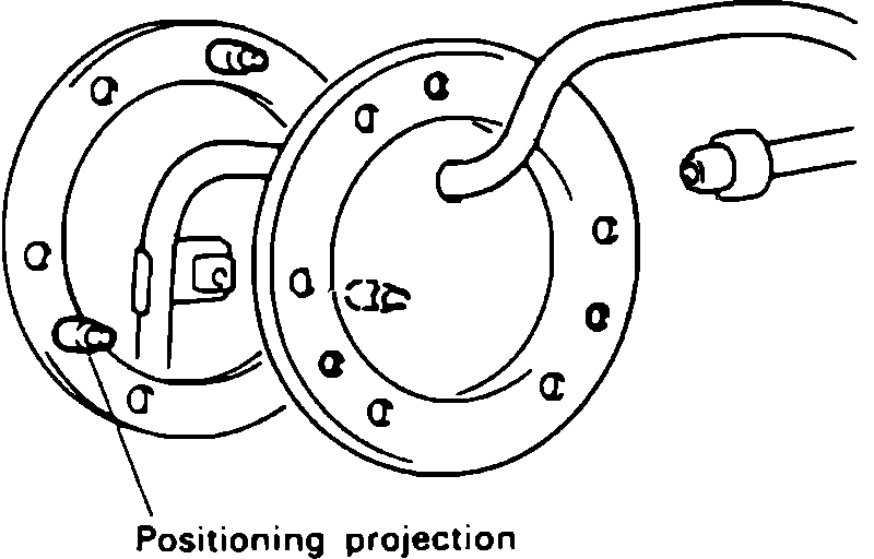 2. As the fuel pump is re-installed, align the three positioning projections with the holes in the fuel pump. Care should be taken at this time to insure that the gasket is properly seated.