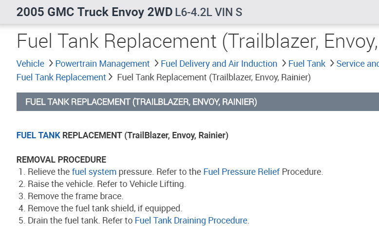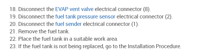This is probably a quick connector on the fuel line. There is a special tool to get disconnect these connectors. You can get a set of them at any auto parts store for around $10.00 to $15.00. To disconnect you pull the two lines towards each other at the connector to take the pressure off of the connector. Then slide the tool in until it pushes the three clips holding the connector together up out of the way. The lines should then disconnect. Sometimes it takes a little force to get the lines apart because they are stuck in place, but they will come apart. In the diagrams down below I have included the factory directions for the removal of your vehicle's fuel tank. Please go through this guide and get back to us with how it goes.
