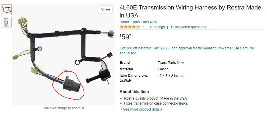Update. I found it. It is part of the transmission wiring harness and is for what I mentioned above. It took some digging, but I found the harness online. Take a look at pic 3. That is on Amazon.