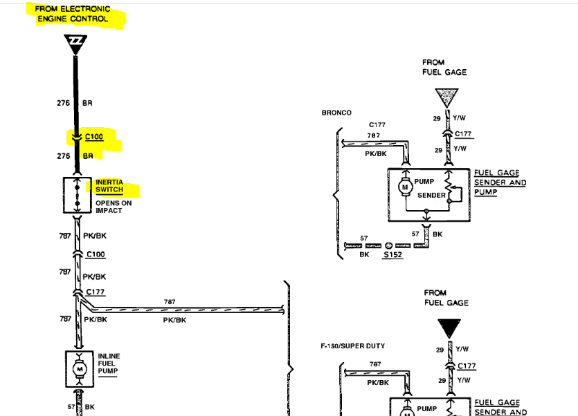 What can be the cause of no power to inline fuel pump and no power to inertia switch? Checked for power on relays and they have power so do all fuses replaced the fuel pump relay and still nothing. The truck cranks but won't fire I put power to the inline fuel pump and it started working but when not doing that there's no power to pump.