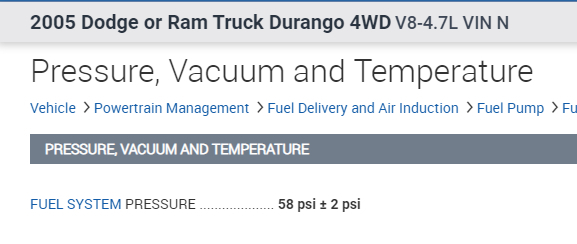 If you look at pic 1 below, it provides the manufacturer's fuel pressure specifications.