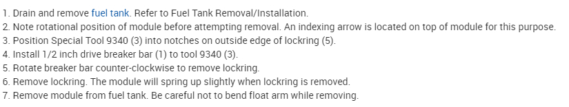 If you find this is the issue, the remaining pics explain how to remove the fuel tank and replace the pump.