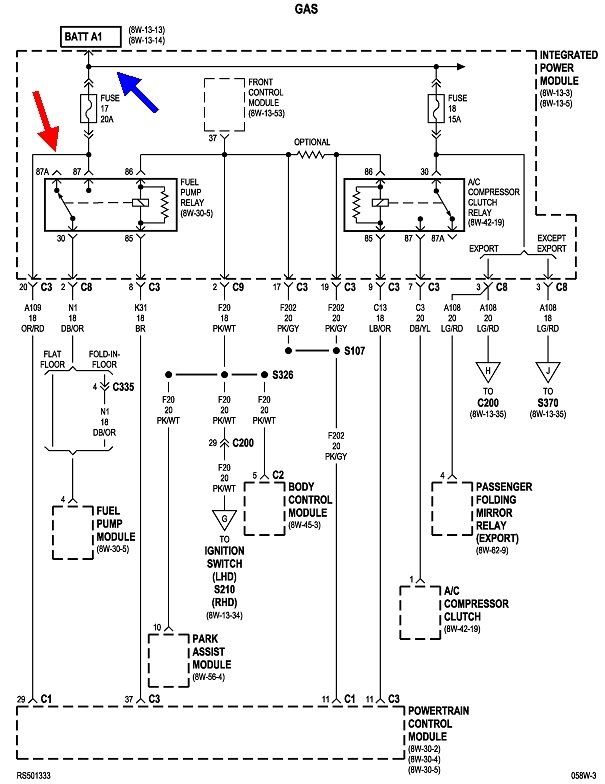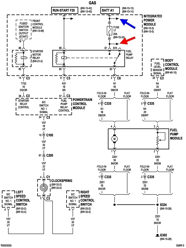 The point of this sad story is the computer also expects to see 0 volts on those two wires when it turns the ASD relay off. My light bulb, (fuse) trick, for finding shorts will maintain 12 volts on those wires when it shouldn't be there, and that can set a diagnostic fault code on some models. That shouldn't prevent the engine from running, but to avoid future confusion, those fault codes should be erased once the diagnostic tests have been completed. I don't see such a "verification" circuit for the fuel pump relay, but it has likely been added on newer models.