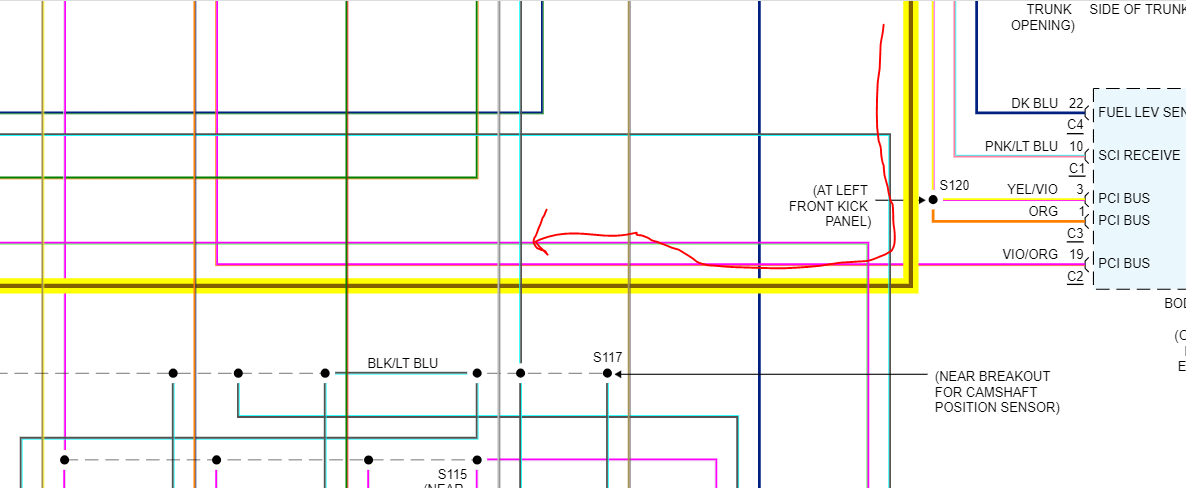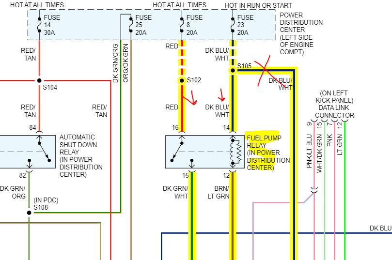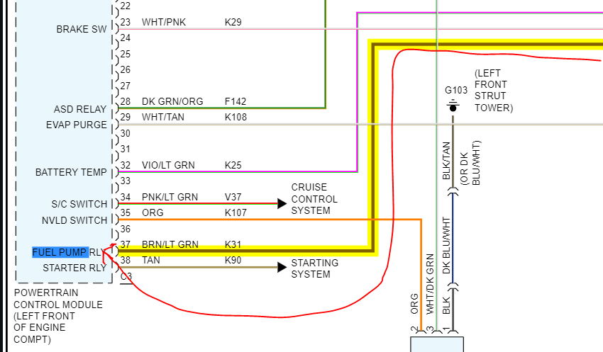 I attached a few pics below. The highlighted wires are related to the fuel pump. I'll try my best to explain how it works.