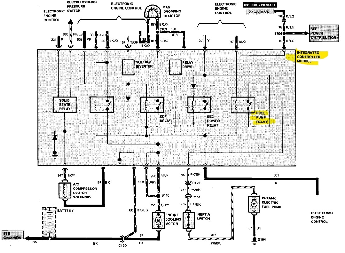 The box above the radiator is just an integrated relay box, its not the main PCM, it just has a bunch of relays soldered onto one circuit board which makes it difficult because you cant just replace one relay, unless you take it apart and attempt to solder in new ones, but that is complicated. If the vehicle has been sitting for 12 years, I can almost guarantee that the fuel injectors are frozen. Ive seen that on vehicles that have been sitting for only 1 year. I wouldnt recommend shooting any compressed air down the fuel lines, you need to see if theres any fuel pressure getting to the fuel rail. Fords are easy to check for fuel pressure, there is a small port on the fuel rail thats easy to screw a fuel gauge onto, There should be a small plastic cap over the port, just take that off and you'll see the small port that has threads on it. Harbor Freight has a cheap fuel pressure kit that should have the correct adapter, Ford is the small one. When you turn the key On, you should hear the fuel pump prime for about 2 secs. Then check the pressure gauge.