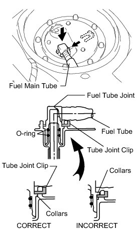 * Check that the tube joint clip is on the collar of the fuel tube joint.