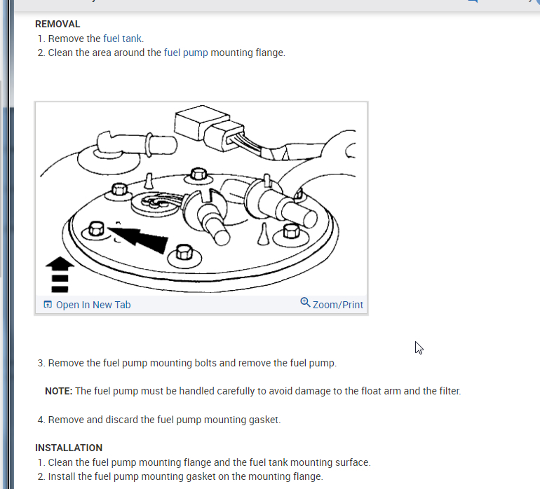 Lastly I attached the process out of the manual that will give you the info needed as well to replace the pump. The location of this is in the fuel tank so that needs to come down in order to replace it.