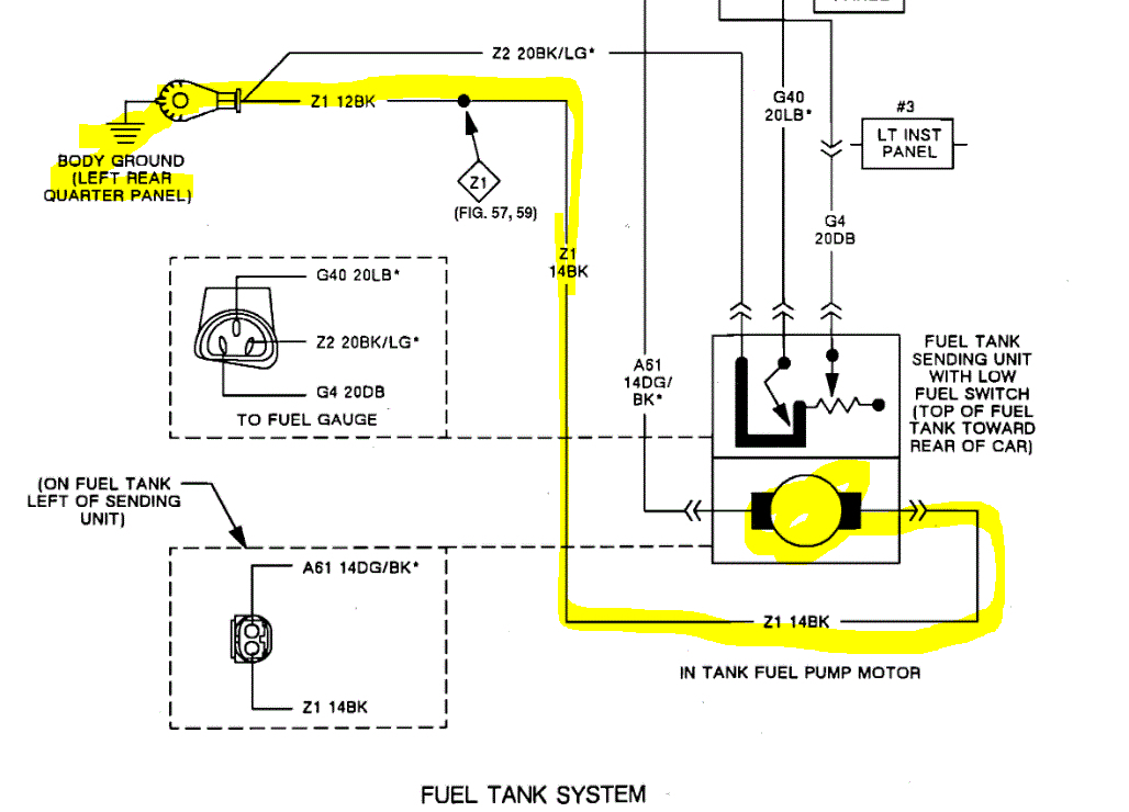 This diagram shows the ASD relay and some of the circuits it feeds, (green arrows). The easiest and fastest way to see if the ASD circuit is working properly is to go right to the ignition coil positive terminal, or either smaller terminal on the back of the alternator with a test light.
