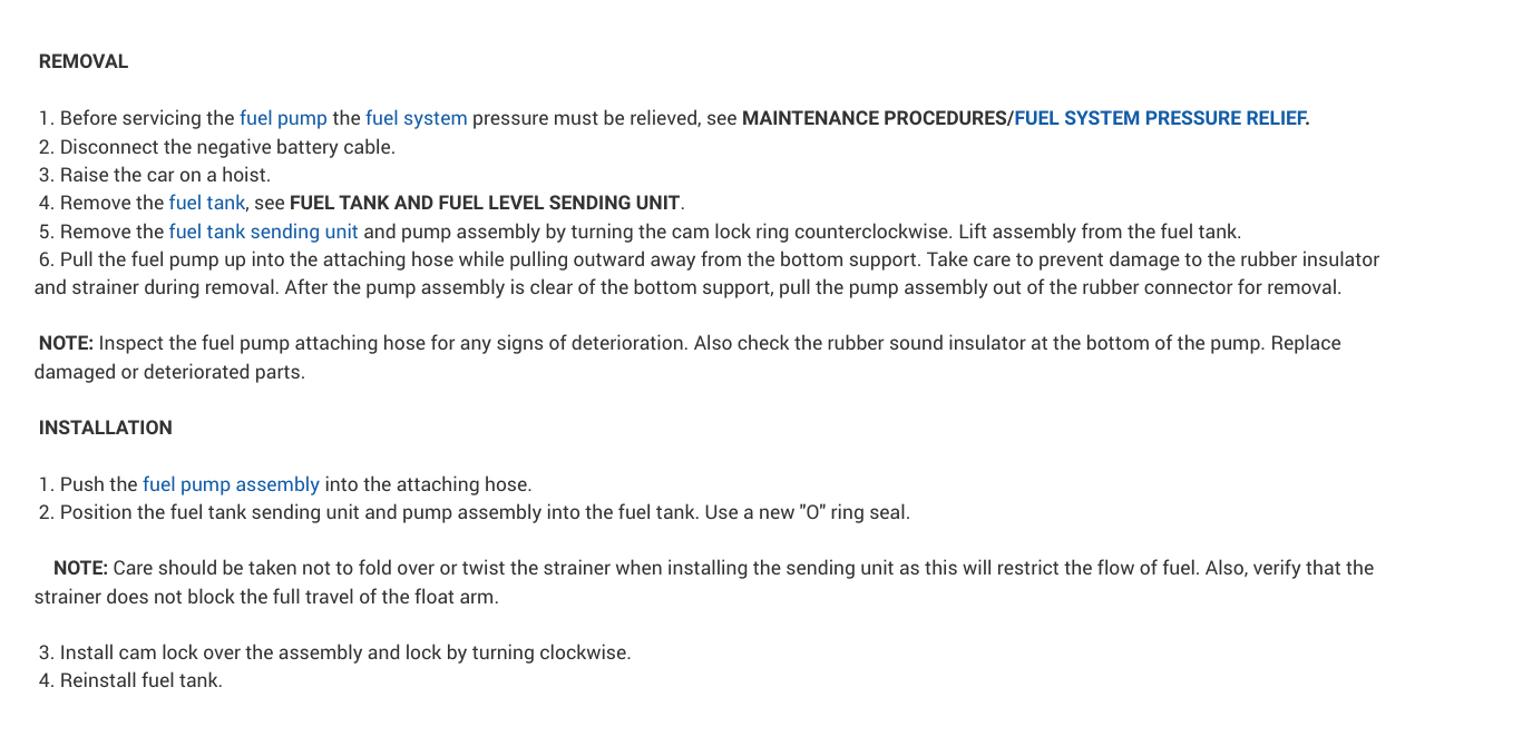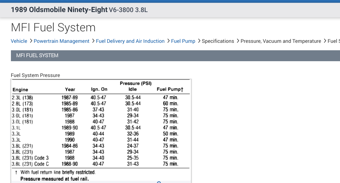 I have included for you the fuel pressure specs for your vehicle and the instructions for the removal and installation of your vehicle's fuel pump. Please go through these guides and get back to us with how everything turns out please.