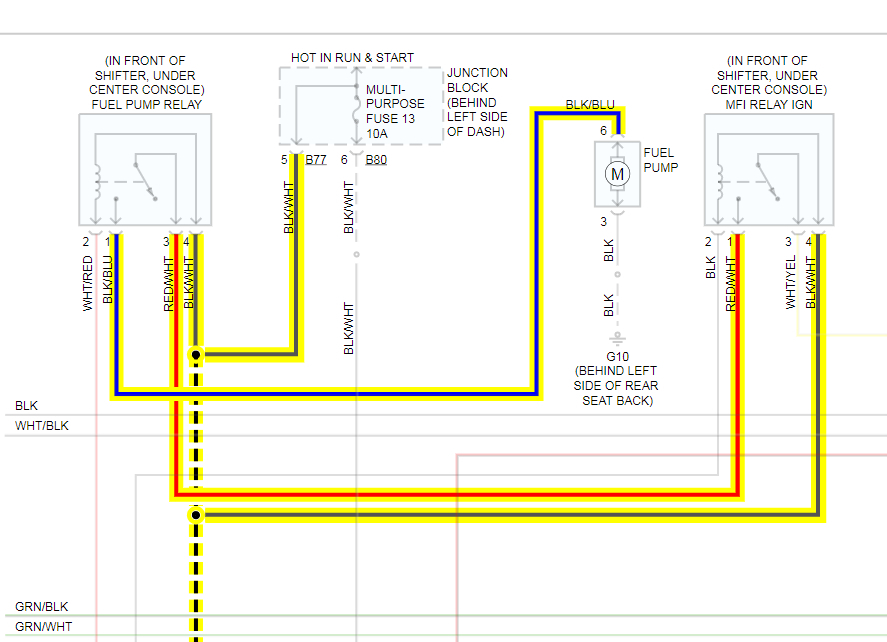 Trying to get my daughters car running. Determined the fuel pump was bad. Also determined there is no power to the pump, I think.