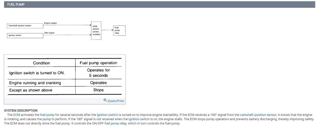 Hi, I have had a similar issue, took the car to a shop they replaced a bunch of parts that they said were definitely bad, but thats another story, they gave me a BS story each time they replaced something, and I am talking a reputible shop in town here, not some joe shmo, found the issue myself after doing some thinking, if you cannot start car, have someone else turn key for you and you listen from backseat with the larger half of the seat folded forward, the fuel pump is right below where the velcro connects the trunk carpet right below there, but to get to it back seat comes out, along with the round pressed metal surround under the plastic pieces there along with them. Anyways listen for the fuel pump as the other person turns key, you cant do this test yourself. If you hear nothing, its most likely it, try a few times, then get out and rock the car back and forth a couple times from side to side, at this point the wire which is half broken inside may align itself, try listening again, if you are able to start car, then get the sending unit or fuel pump harness kit, forget which it was, but the wire that is bad is the one that connects to top of the fuel tank seal and the other side to the fuel pump. I hope this saves a lot of headaches for everyone, and I can't believe that nissan doesnt even have this documented. Definite design flw, basically what happens is while driving the sending unit along with fuel pump are suspended by 2 fuel lines and this wire harness, and it, just like any piece of metal eventually partially breaks when folded back and forth a thousand times.I dont believe you can buy the cable itself, it comes as a part of the kit or sending unit, one connector is flat, other square with rounded corners, I believe around 80$ bucks at nissan dealer only. Good luck, let me know how it works out.