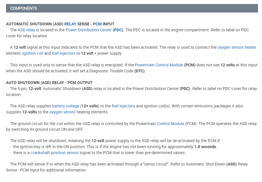 Truck starts first time every time intermittently the vehicle will shutdown. There is no power to the fuel pump when it has sat and cooled off truck fires back up and runs fine until next shutdown. I have replaced the fuel pump and relay. I believe there is something shutting off power at the ASD, but I don’t know what is coming into the relay. As a side note I have shot gas into the intake during the shutdown period and it will start up. Any ideas? Thanks