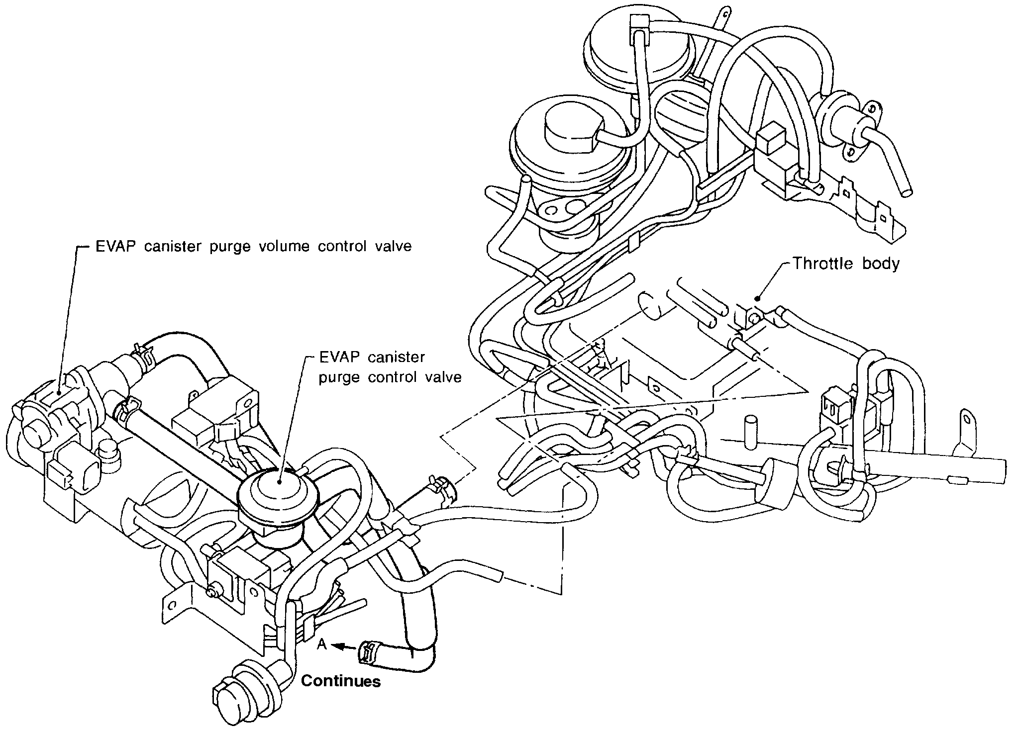6. Stop engine and disconnect fuel pressure regulator vacuum hose from intake manifold.
