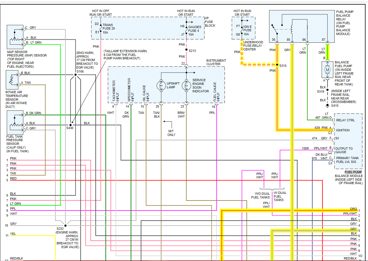 I have attached the entire powertrain management wiring schematics for you. I highlighted everything related to the fuel pump.