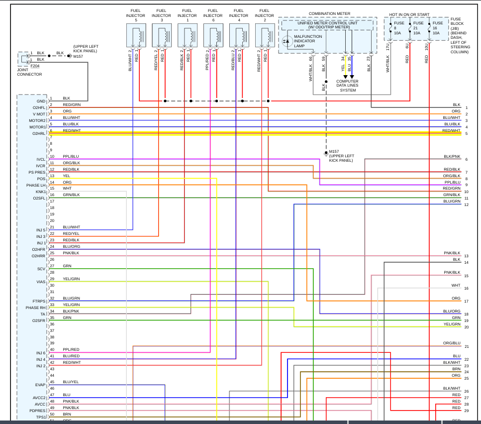 With the ignition on, there is no power at the fuel pump connector. Have checked all fuses so wondering if the relay may be bad. Had a fault code for fuel before I started and has one now. Also throttle position codes 0123, 0223, 1122. Also 1131 (but it had this before). Just saw your comment re the location of the fuel relay so will check that.