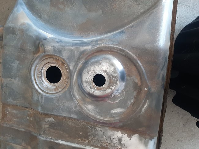 I am restoring the car listed above and the fuel gauge isn't working. So I dropped the tank to check sending unit. And as I am emptying the gas from tank I realized there is a lot of large loose objects moving around. I can see a large metal ring that looks like it was attached around where the pressure release valve is. Does it need to be rewelded in place and if so how should I go about it?