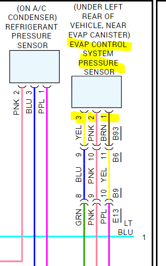 My fuel tank pressure sensor was pulled off after I had a blow out on the rear passenger side. I bought a new sensor and a connector but I'm not sure how to wire it back. I need to know the what wire goes where.
