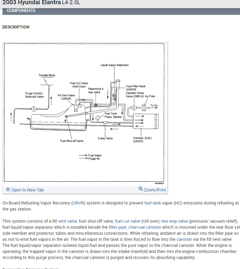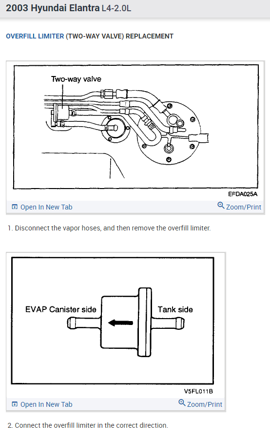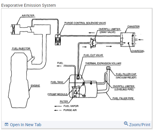 I have attached diagrams for the refueling valve, EVAP solenoid and other components for your reference.