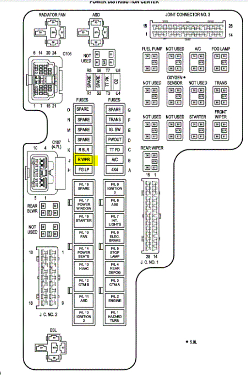 The rear wiper fuse is located under the hood in the power distribution box. If you look at the attached pic, I highlighted the fuse. Remember, when checking a fuse, first confirm the fuse is good and then determine if there is power to it and from it.