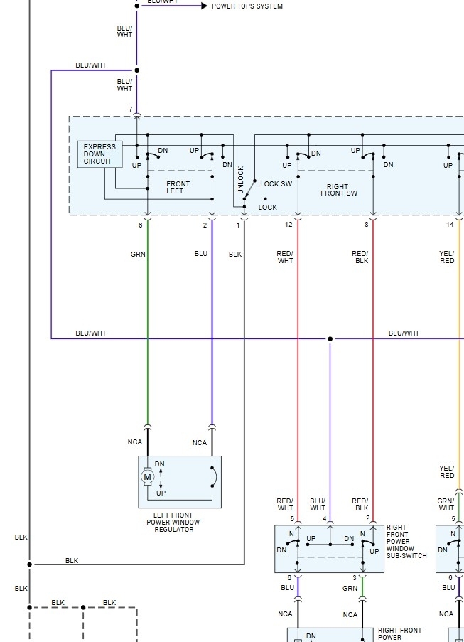 You would need to get the panel off. There is no jumping of wires involved, you are going to test to see if the switch or motor is bad. Both can fail. For that you unplug the switch and use wires connected to 12 volts (battery or a jump box, then apply power to the Green and Blue wires that go to the motor. One way the motor goes up, reverse them the motor goes down. If the motor operates OK in both directions the switch has failed. If it doesn't move then the motor is bad. No you cannot run both off the same switch, the current of both motors would destroy the switch very rapidly.