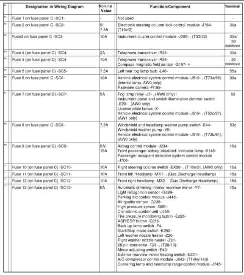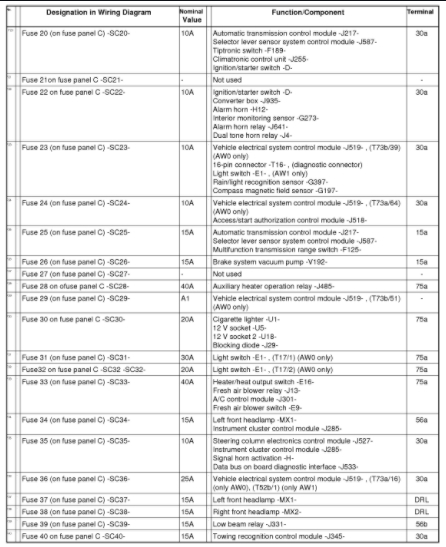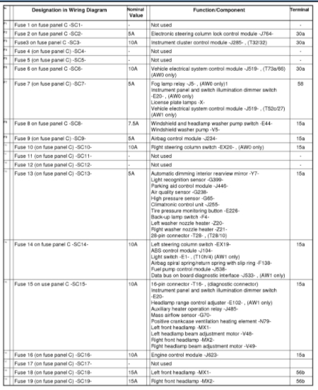 I'm looking for the fuse diagram for the car listed above Comfortline.