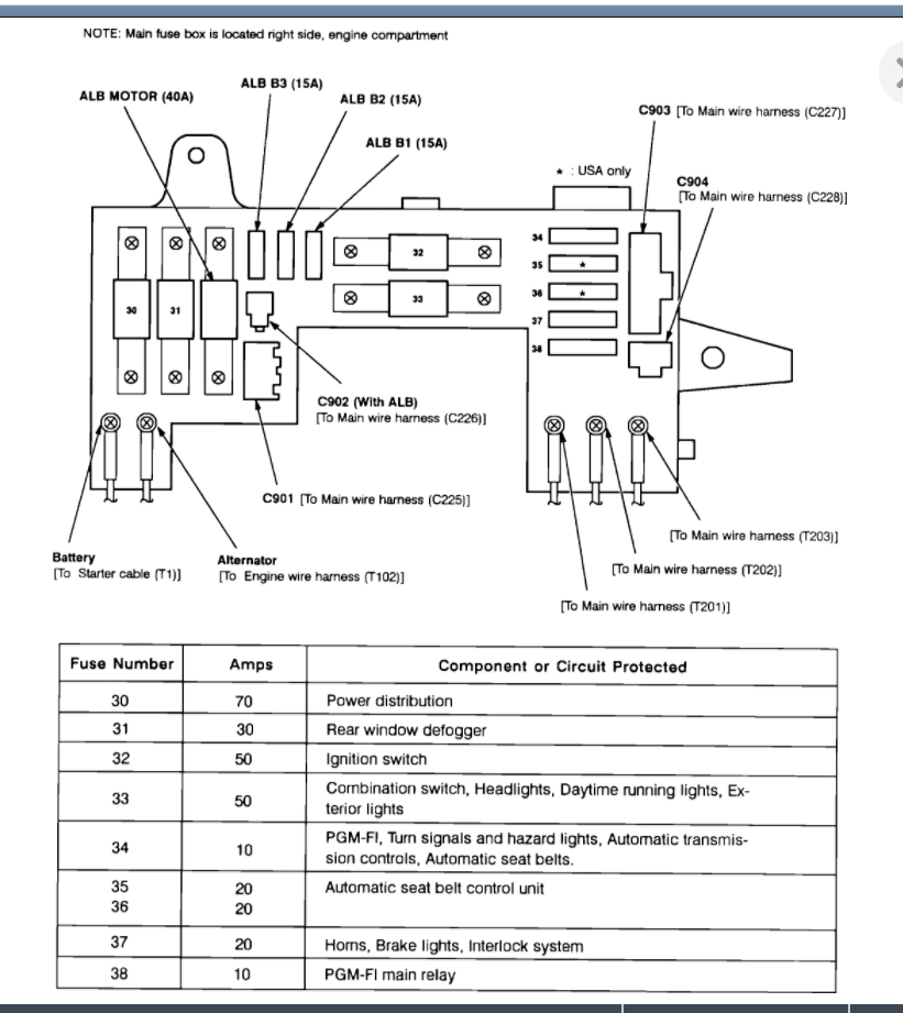 Below are the fuse diagrams but I would suggest with starting with checking voltage at the starter. I assume that you have a crank no start. Meaning it will turn over but not start.