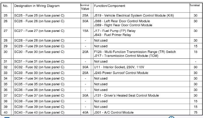This information is a little vague but here is wat I found. I hope it helps you. Check out the images (below). Let us know if you need anything else. The first three are for the engine room fuse panel.