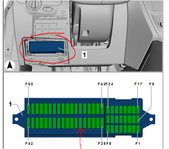 It's located in the fuse panel at the bottom left end of the dashboard.
