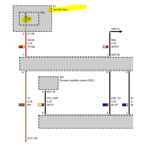 The following codes display when scanned under the ABS-DSC : 1. 4806CF : parking brake cannot execute control command.