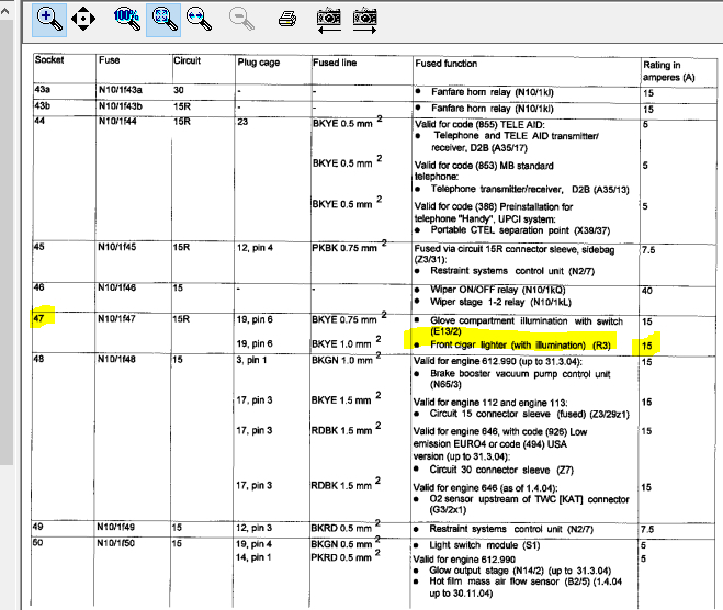 Cigarette lighter fuse location