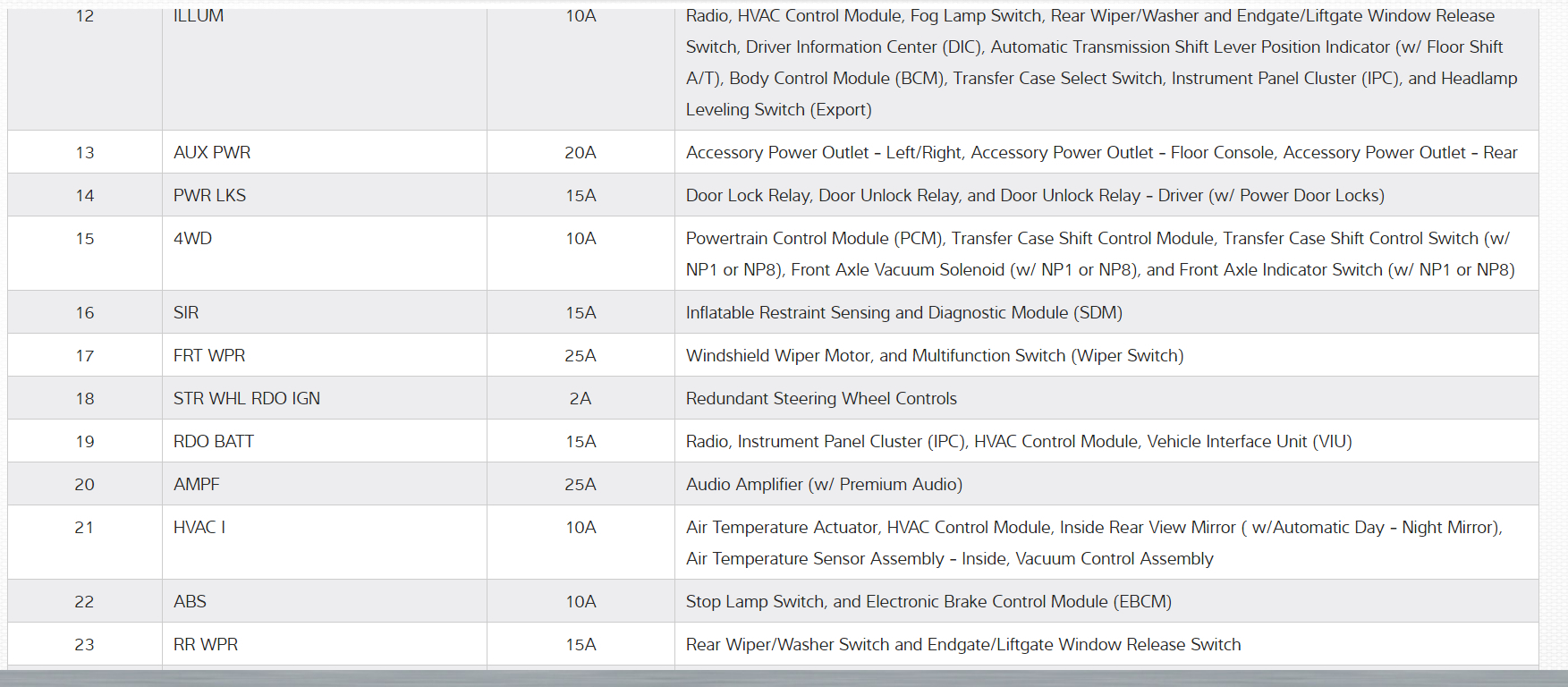 It looks like fuse 17(25A) in the instrument fuse panel which is located on the left side of the instrument panel near the door jamb switch. I have included diagrams if it and the fuse legend below.