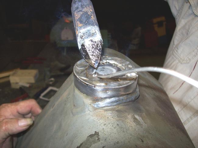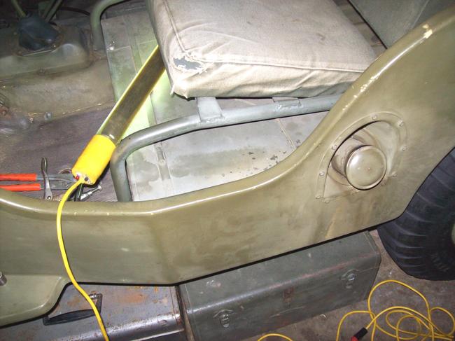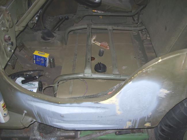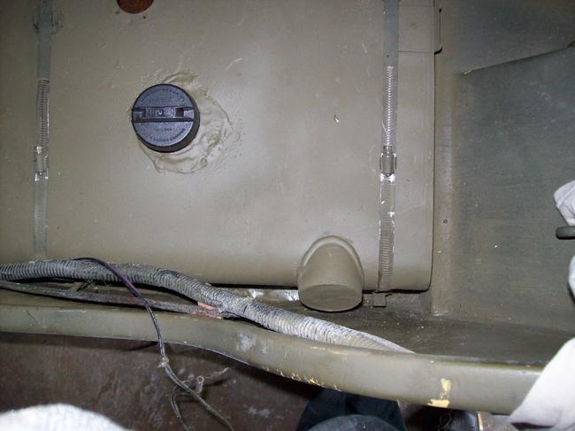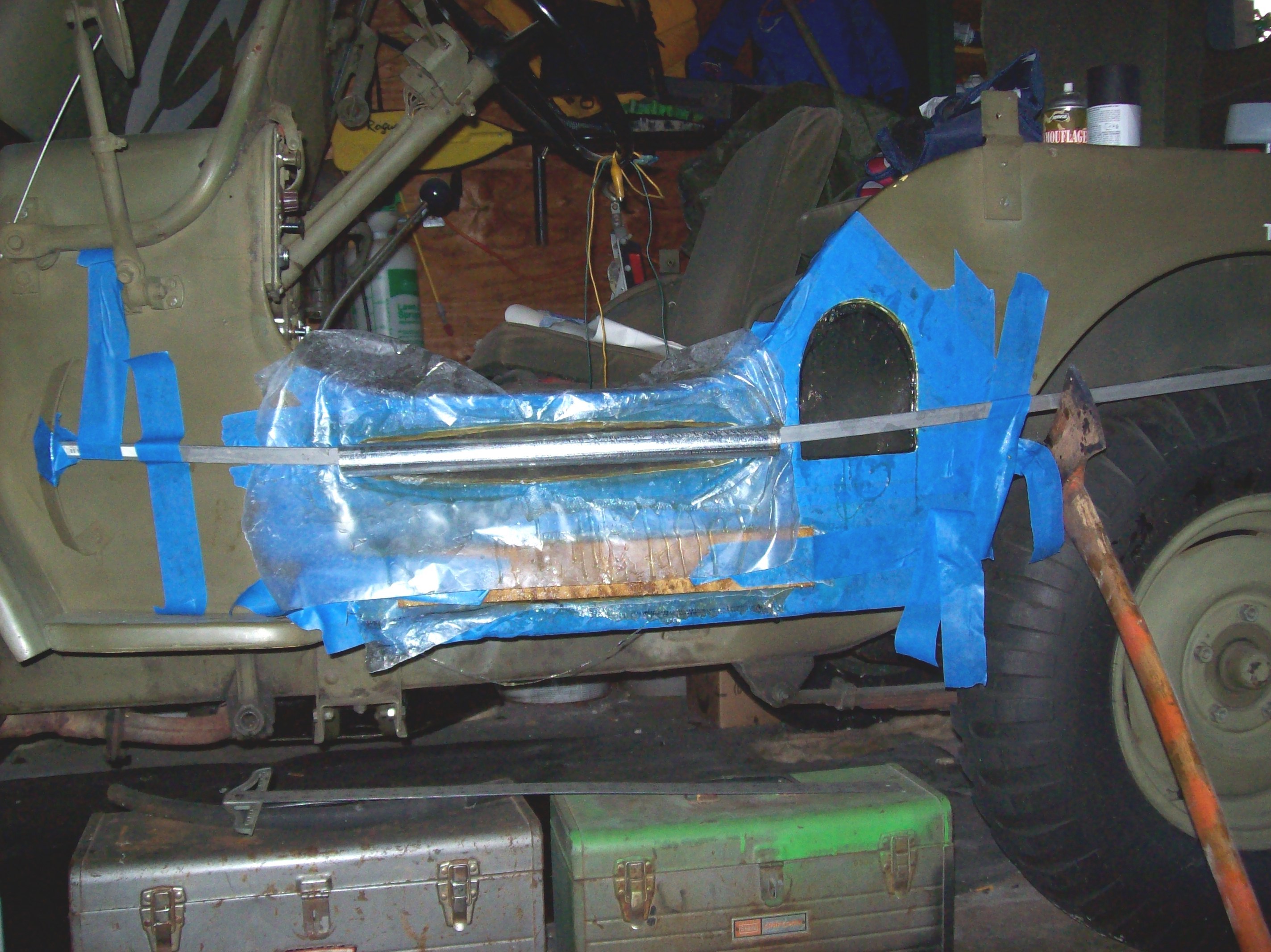 HAVE SOME PICS FROM MY RECENT TANK MODIFICATIONS TO MY '46 WILLYS ("WILLY"). HAD TO RELOCATE THE FILL SPOUT/ DO SOME BODY WORK TO ACCOMMODATE INSTALLATION OF THE SHOVEL AND AX (AS MY BODY CAME WITH NO PROVISIONS)