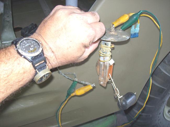 GROUND THE "EXTRA SENDER".I GO ALL THE WAY BACK TO THE BATTERY NEG POST WITH LONG JUMPER WIRES TO INSURE A GREAT GROUND IS ACHIEVED. IN THE CASE OF THESE PICS, I WAS NOT HAVING A PROBLEM, I CONNECTED TO MY GROUND WIRE AT THE TANK, NOT THE BATTERY, THESE PICS WERE MADE SO I COULD USE THEM ON 2CAR, AND TO AID IN TEACHING MY OTHER JEEP BUDDIES