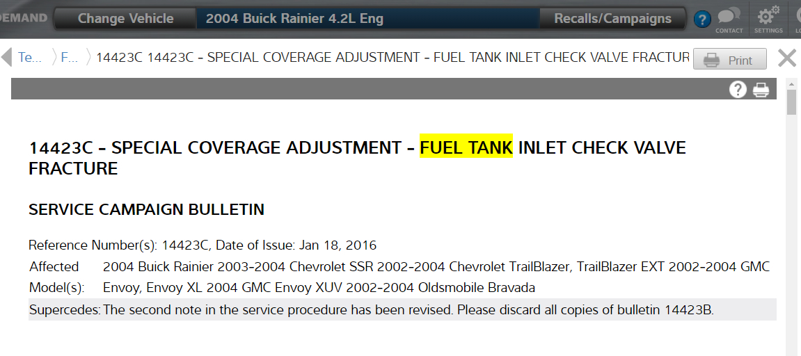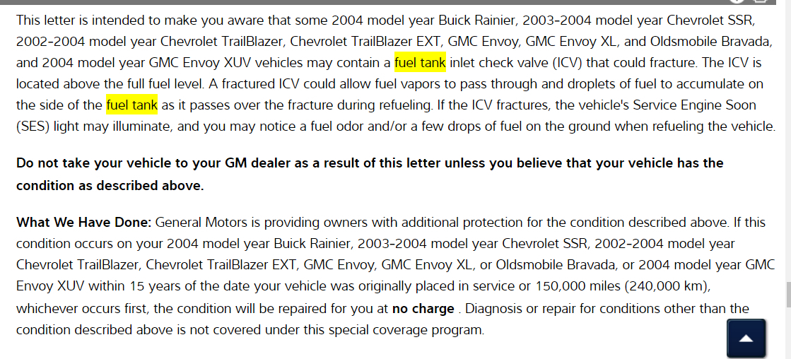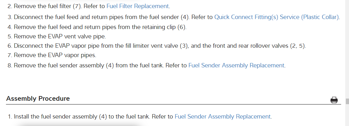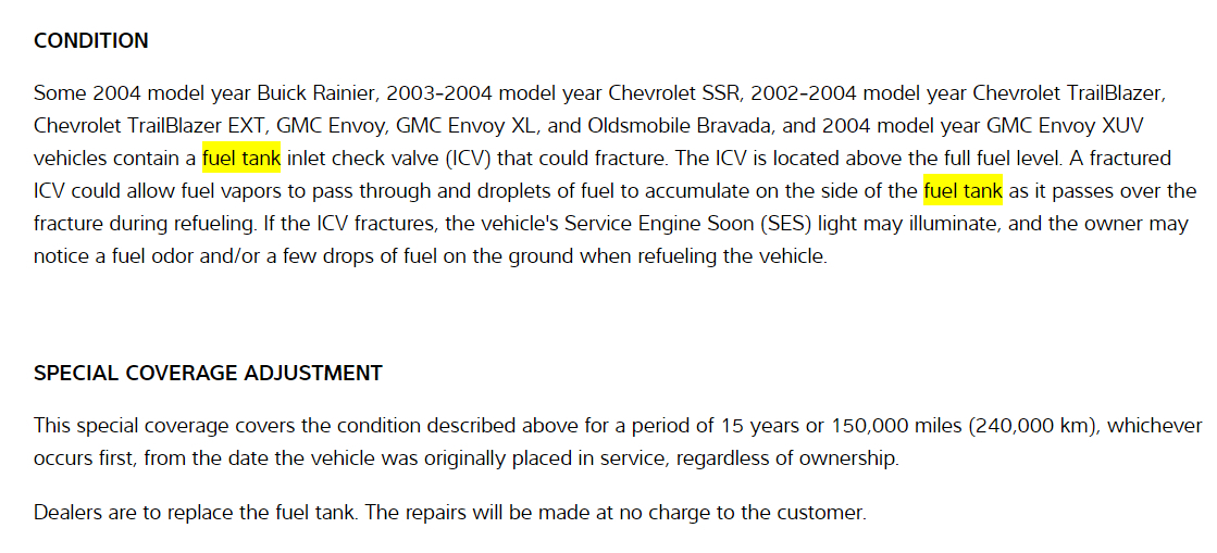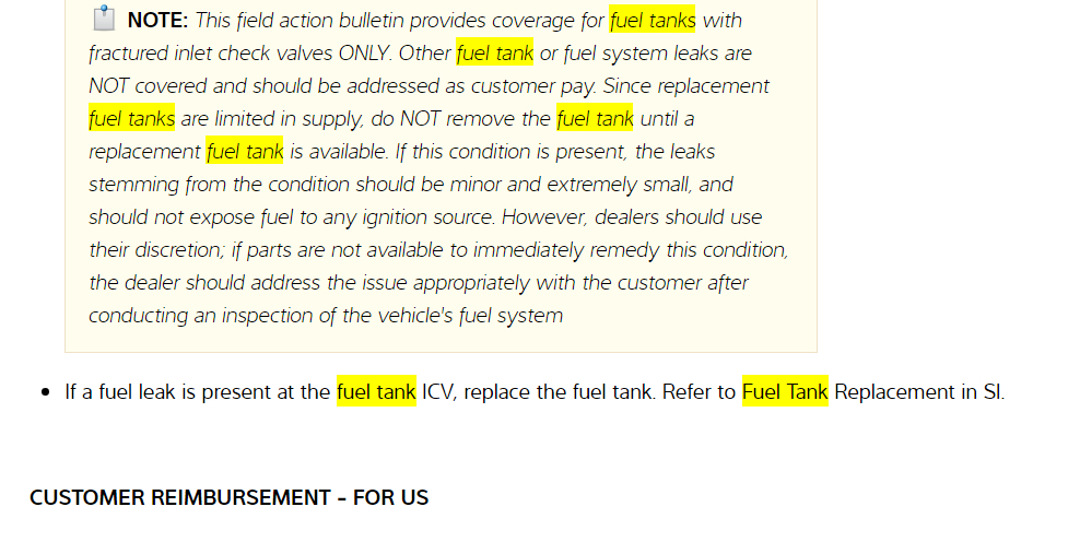 Okay, it was worth a try. Take a look at the TSB, though. They are extending the coverage out to 15 years or 150,000 miles, so you might still be eligible to take advantage of it. If not though, you are probably going to have to drop and empty the fuel tank, then refill it with known good gas. The step by step factory instructions are included for you in the diagrams down below. Please be patient, they are quite lengthy. Please go through them and get back to us with how everything turns out, please.