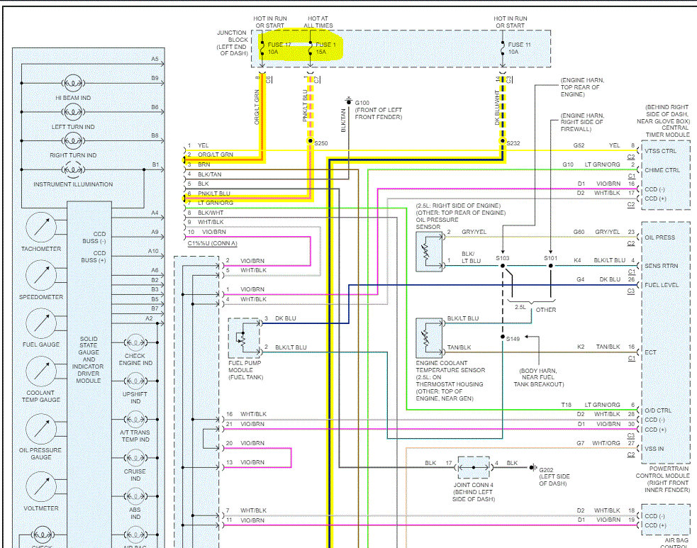 All lights turn on but speedometer, tachometer, gas gauge, oil gauge and temperature gauge. Fuse 11 is perfect I can’t figure out the problem.