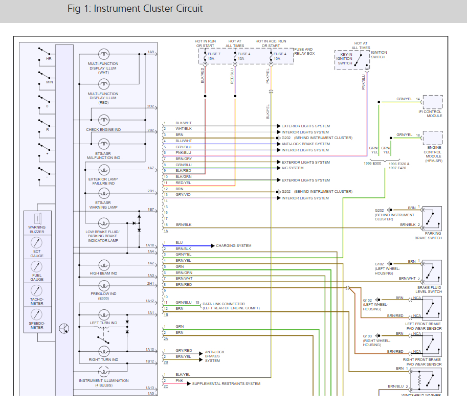 Fuel, temperature, speedometer, and tachometer gauges quit working. The tachometer gauge does jump when key is switched on and the fuel gauge registers sometimes until engine is turned on then they all register 0.