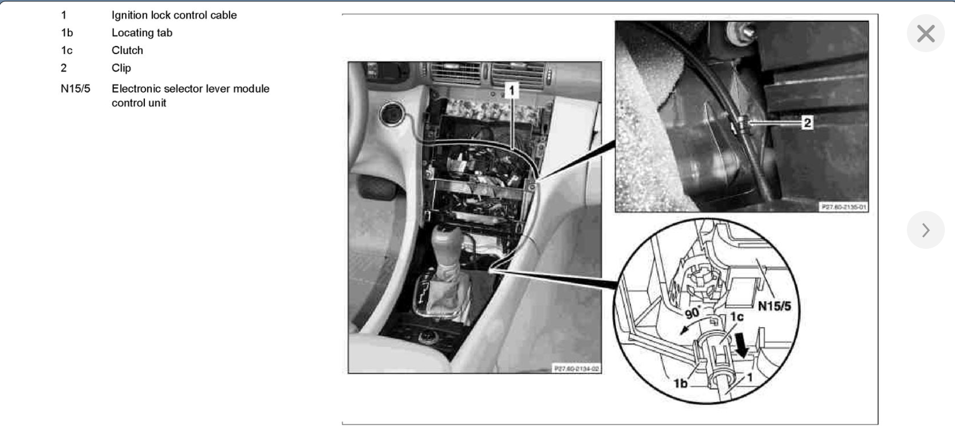 There is a shift interlock cable that sounds like is misadjusted are is not working right here is a guide to show you what to look for so you can find the problem.