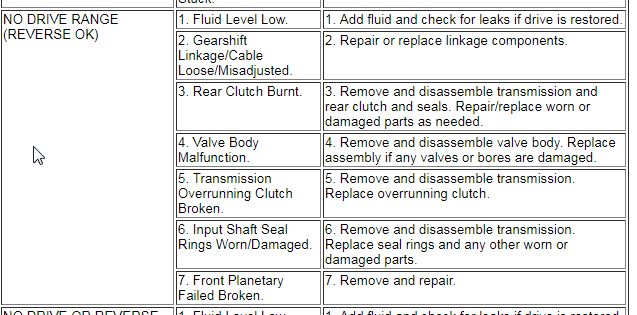 I put it in drive, then it moves but then it does not move anymore. So I turn it off then start it again, then it will go to drive again and it moves a little then stops moving So I’ll do it all over again. But reverse works fine.