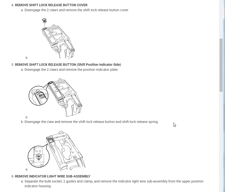 That button that you are pressing is the bypass to allow you to move the shifter to get it into neutral if you have to tow it.