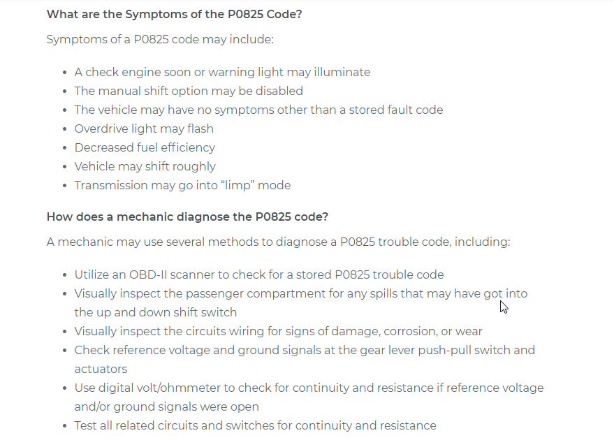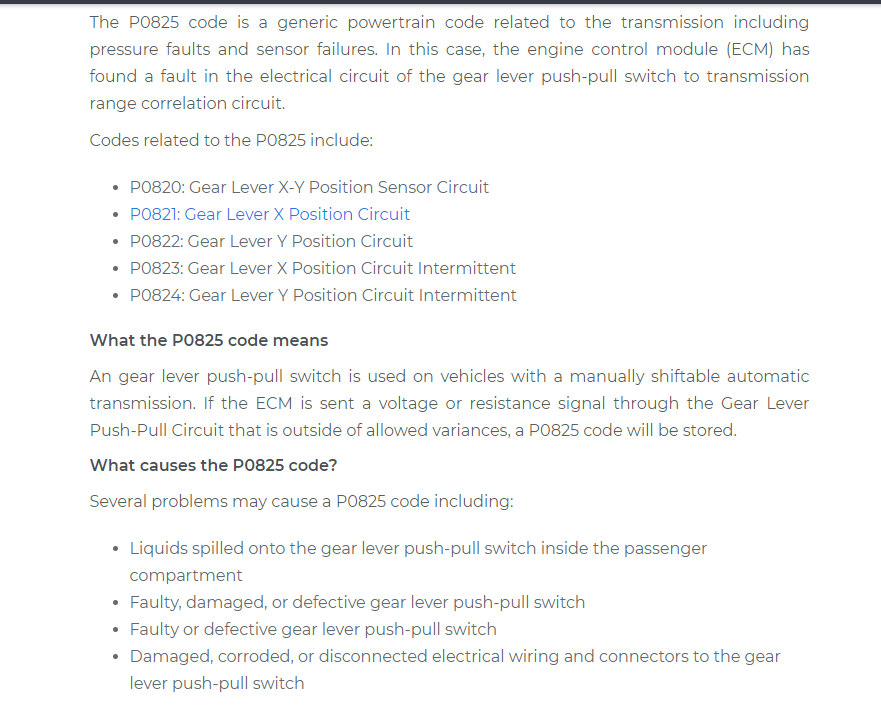 I assume that part is the push-pull switch? I am attaching some info below about this code and it basically is pointing a switch issue but it could also be the wiring for this push pull switch. So has there been any drinks like a soda that were spilled on the shifter?