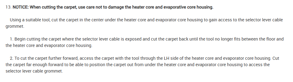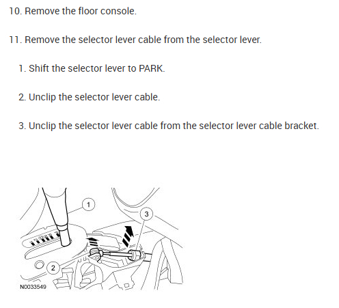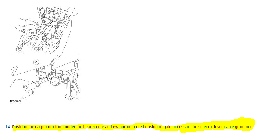 I have the cable detached from the gear shift and the linkage. I have the center console removed. It appears to be a very tight fit where the cable threads from the compartment to under the hood. Can the cable be pulled through or another part have to be removed?