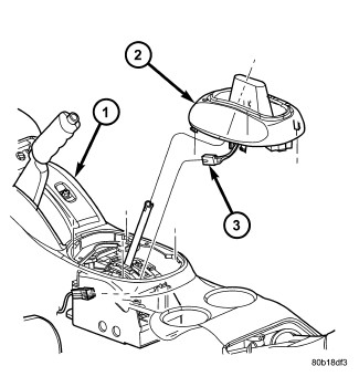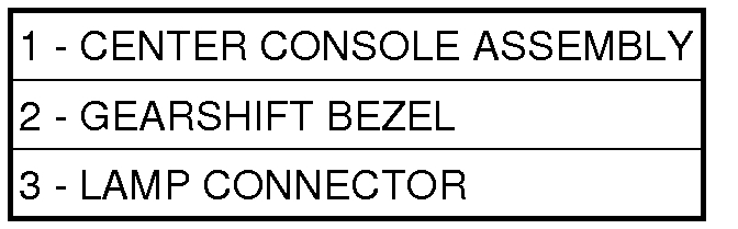 3. Remove gearshift selector bezel (2) and lamp wiring.