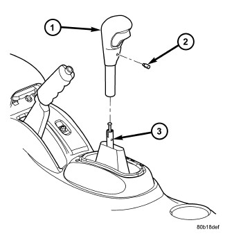 2. Remove the gearshift knob set screw (2) and knob (1).