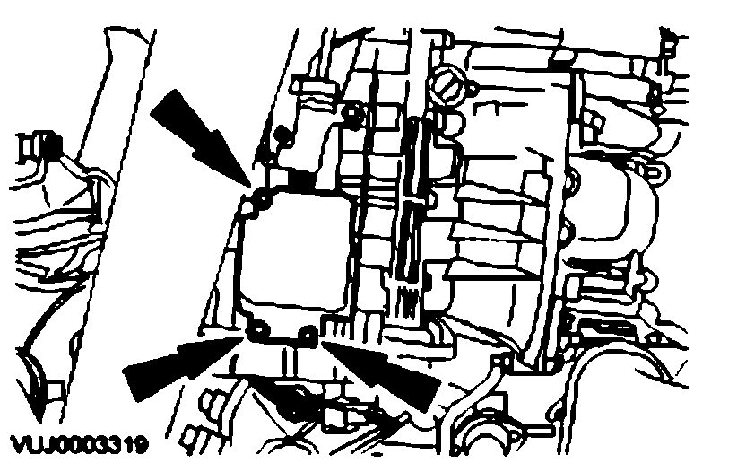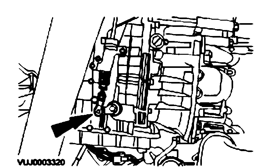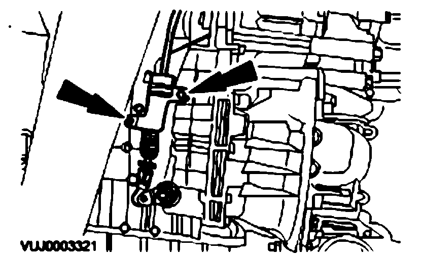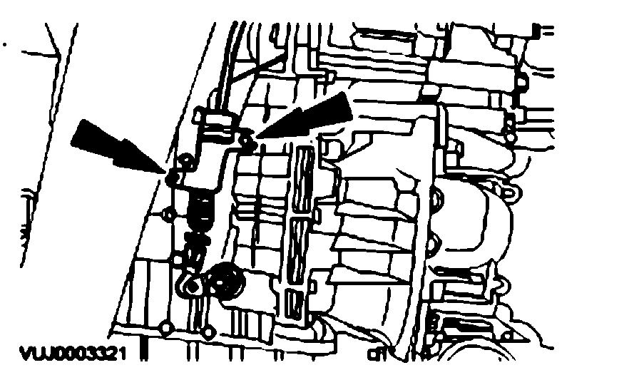 13. Remove the gear selector cable from the gearbox mounting bracket.