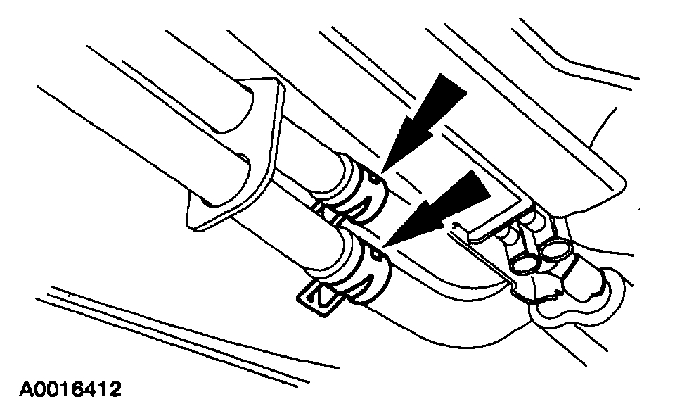 Disengage the clamps and remove the transmission fluid cooler hoses and the power steering fluid cooler hoses.