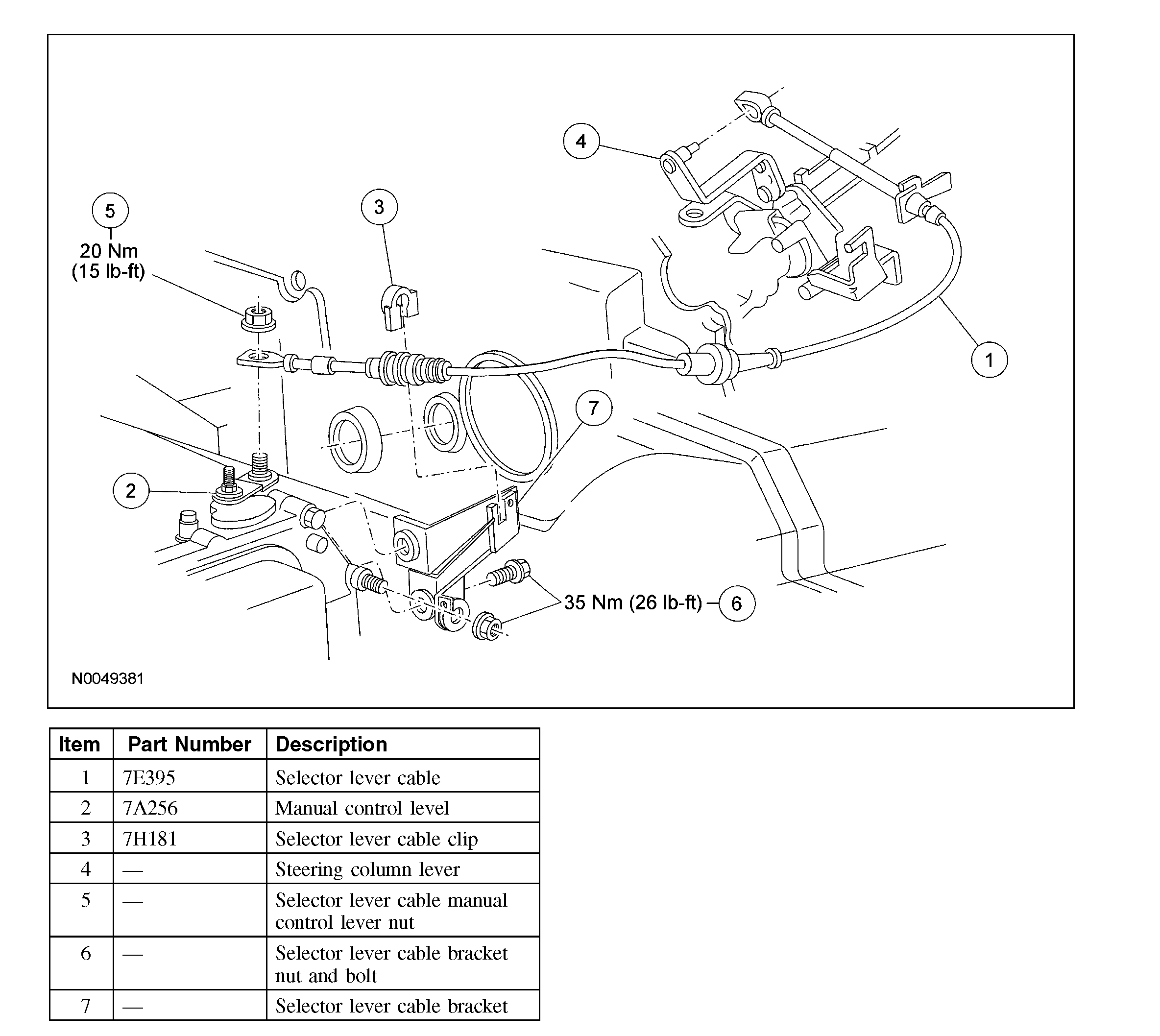 Selector Lever Cable and Bracket - Column Shift