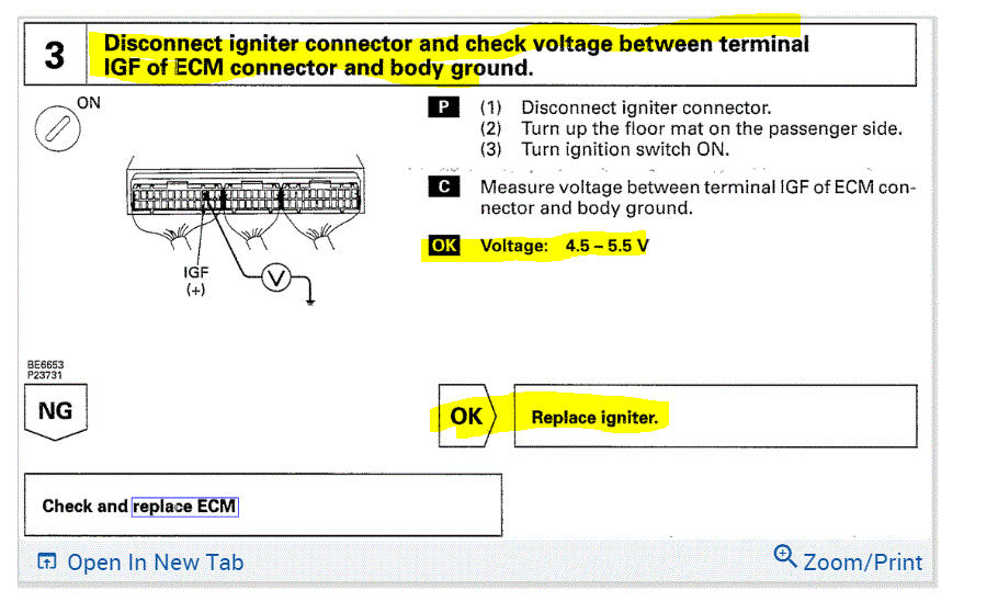 3. IGF signal is 4.6V at ECM and igniter.
