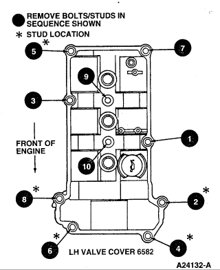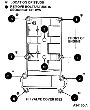 Loosen valve cover retaining bolts and stud bolts following the removal sequence shown.