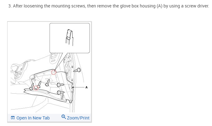 I provided the directions below for removing the entire glove box. I'm not sure if that is what you needed. For example, if you need to replace the cabin air filter, this doesn't need to be done.