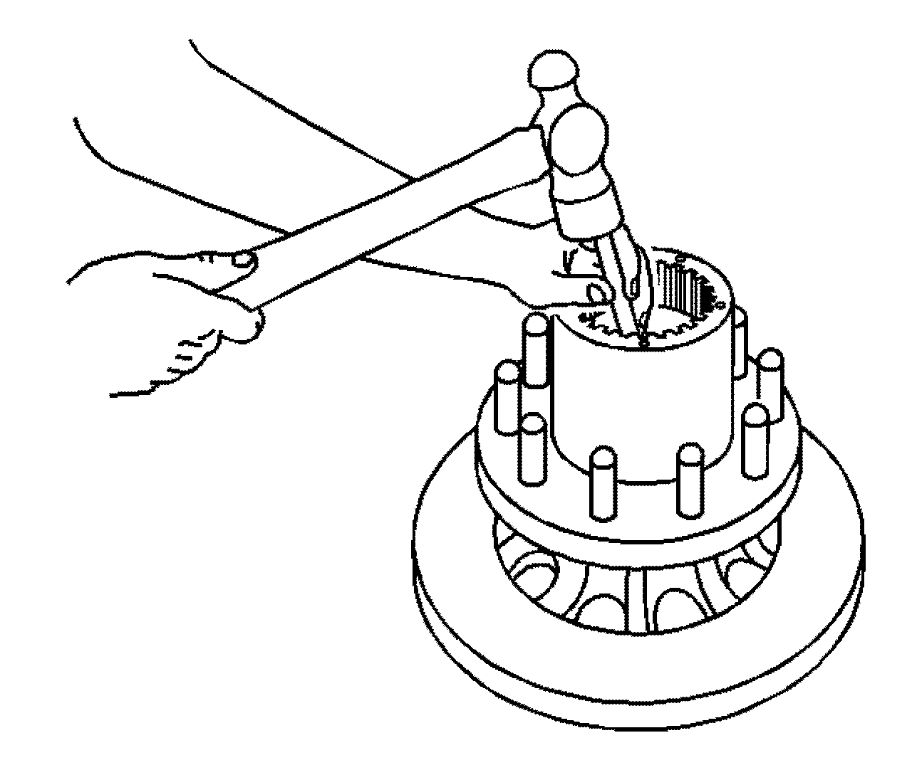 12. Using a brass drift and a hammer, remove the inner hub bearing cup.